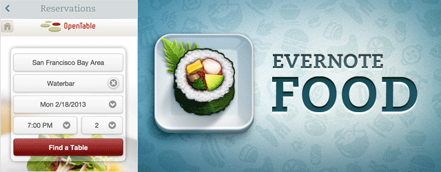- Evernote Food este de un real folos atunci când vrei să serveşti cina la un anumit restaurant, dar nu ai rezervare. Aplicaţia conţine o secţiune numită OpenTable’s reservation – care te ajută să iţi faci o rezervare la orice restaurant. Totodată, poţi face o selecţie a restaurantelor în funcţie de calitatea acestora.