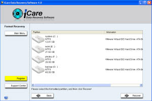 iCare Data Recovery Standard este program cu care puteți recupera datele de pe un disc formatat, capabil de a restabili fotografii, clipuri video, melodii, date de pe unitatea de disc, USB, flash drive, telefon mobil, precum și toate cardurile de memorie.